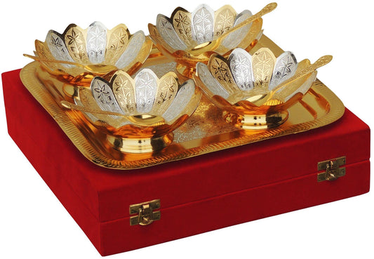 Brass 9 Pc Bowl Kamal Set 2 tone
