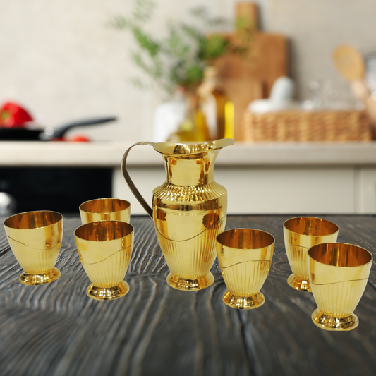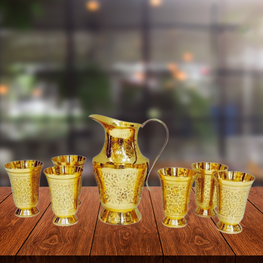 Brass 1 Jug And 6 Glass Set