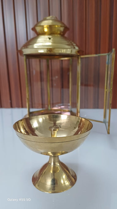 Brass Akhand Glass Jyoti Diya Stand