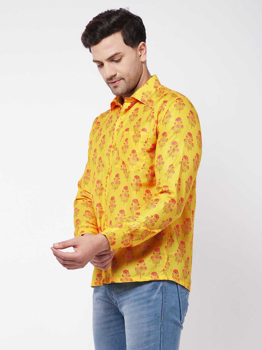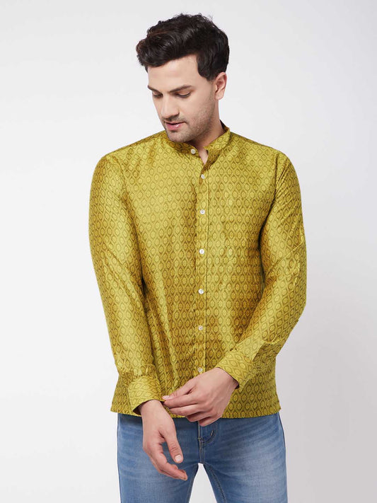 Vastramay Men's Yellow Silk Blend Ethnic Shirt