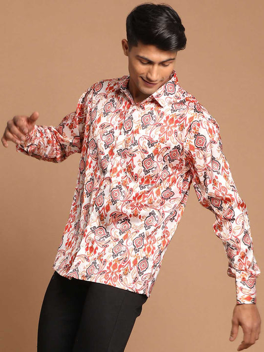 Vastramay Men's Multicolor-Base-Orange Ethnic Shirt