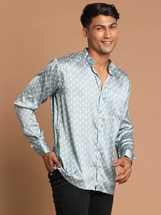 Vastramay Men's Gray Silk Blend Printed Shirt