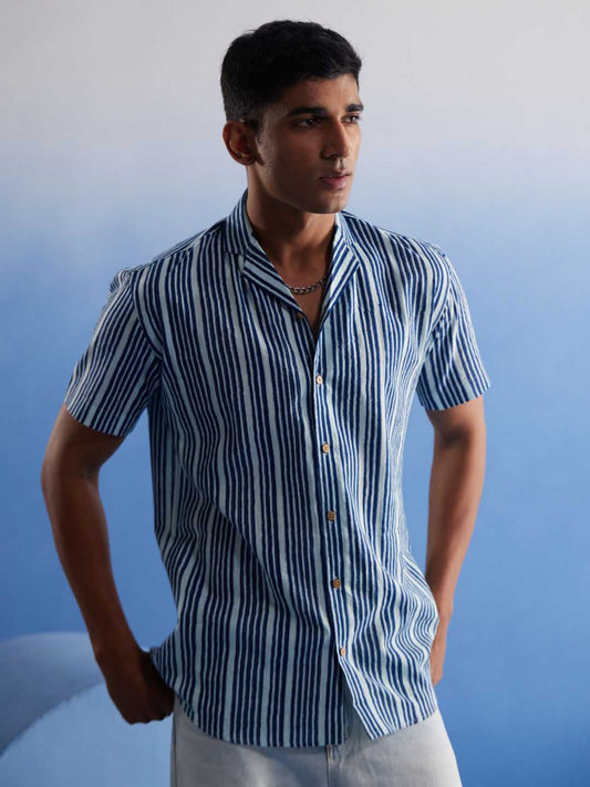 SHVAAS BY VASTRAMAY Men's Blue Striped Shirt