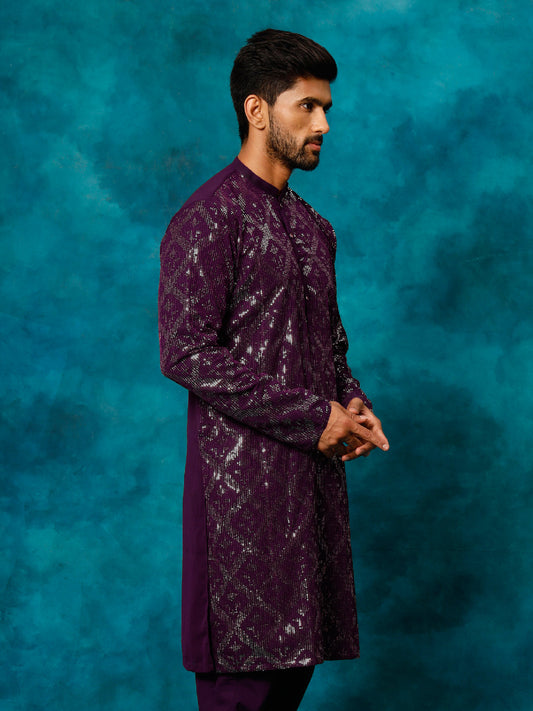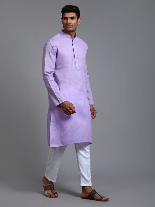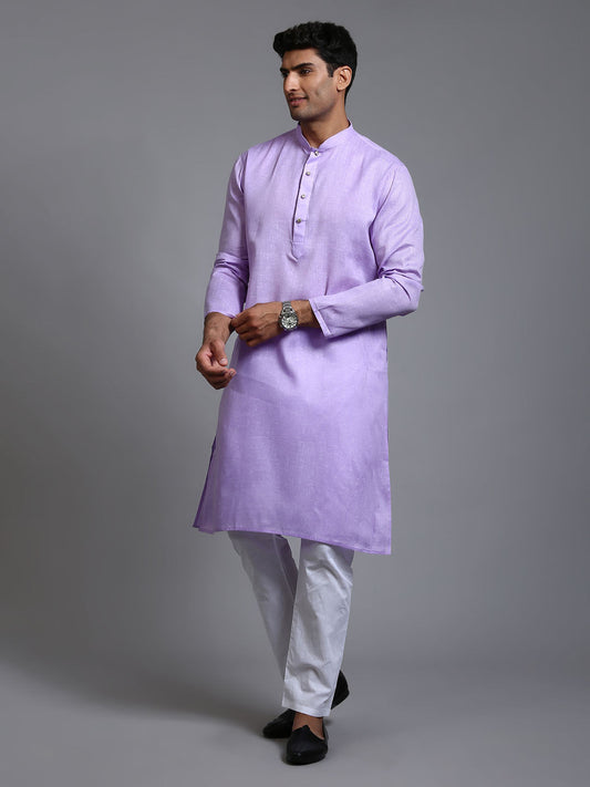VASTRAMAY Men's Purple Cotton Kurta with Pant Set