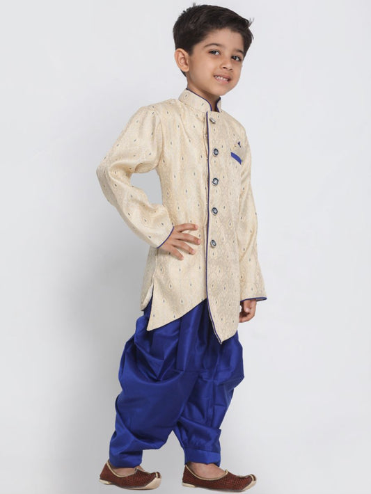 Vastramay Boys' Gold Cotton Silk Kurta and Dhoti Pant Set