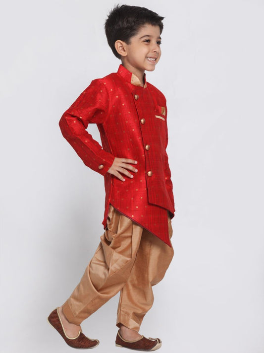 JBN CREATION Boys' Maroon Cotton Silk Blend Kurta and Dhoti Set