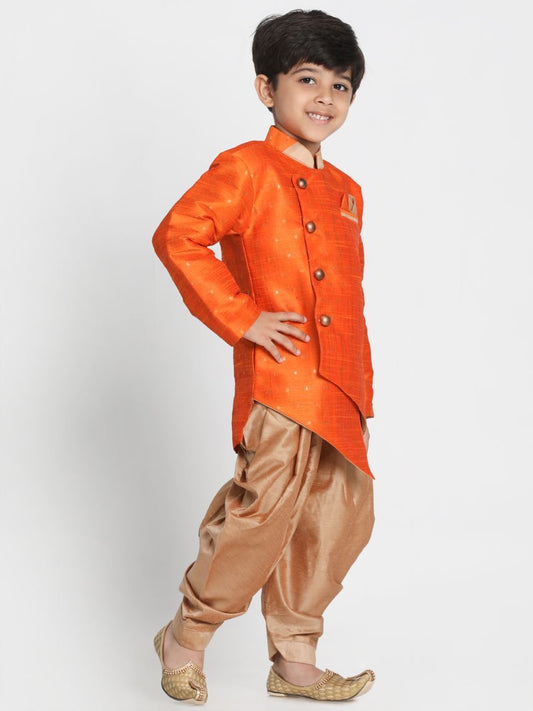 JBN CREATION Boys' Orange Cotton Silk Blend Kurta and Dhoti Set