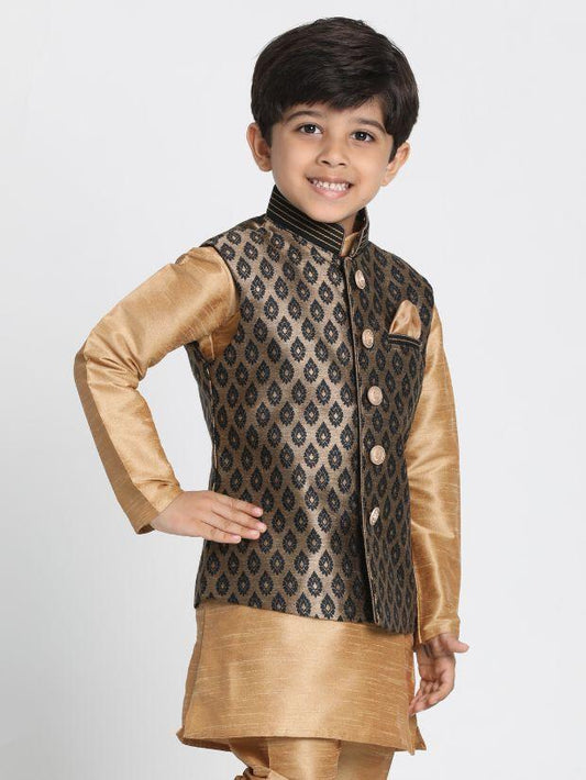 Vastramay Boys Gold Silk Blend Nehru Jacket