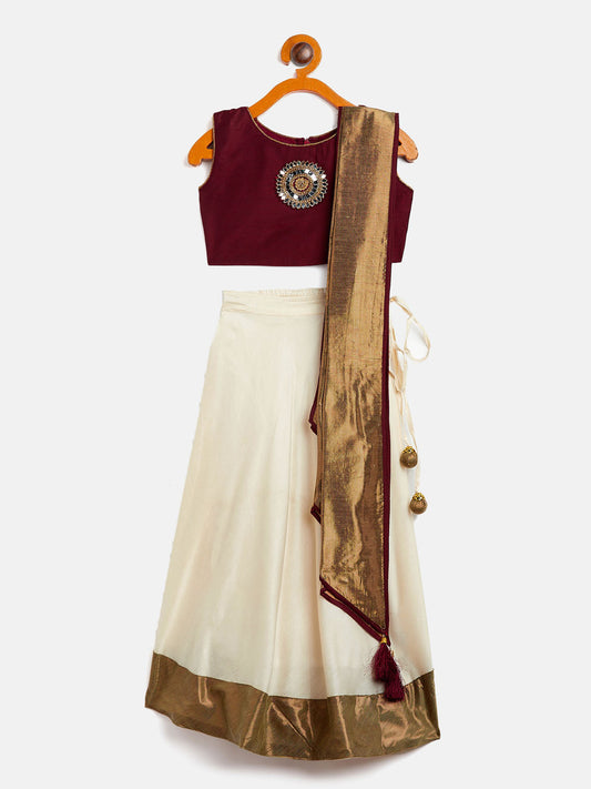 VASTRAMAY SISHU Girl's Viscose Crop Top Skirt And Drape Dupatta Set
