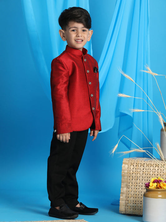 Vastramay Boy's Maroon Silk Blend Jodhpuri