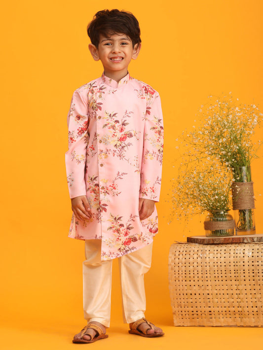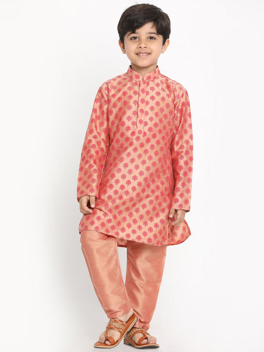 VASTRAMAY Pink Silk Blend Ethnic Print Kurta Pyjama Sibling Set
