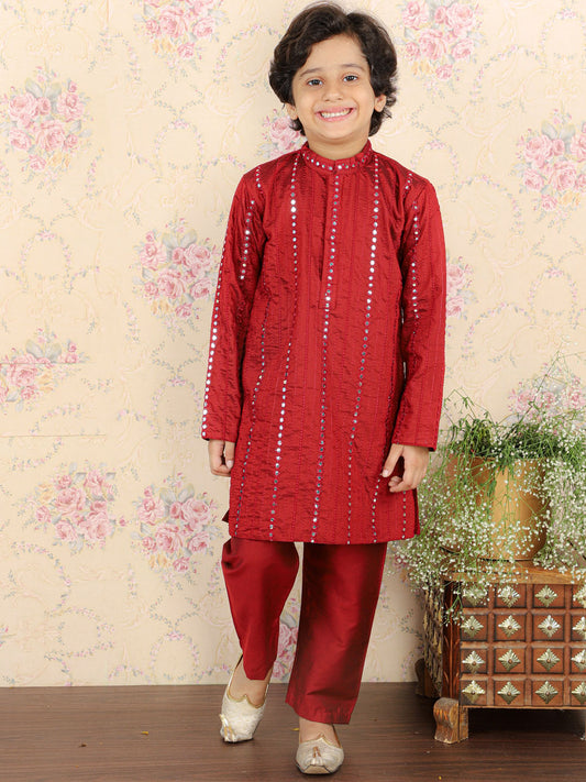 VASTRAMAY Girls Red kurta and Palazzo Pant Dupatta Set