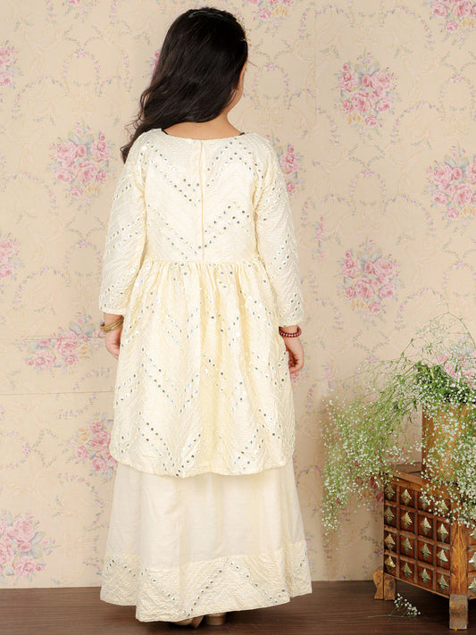 VASTRAMAY Girl's Yellow And Pink Ethnic Dress