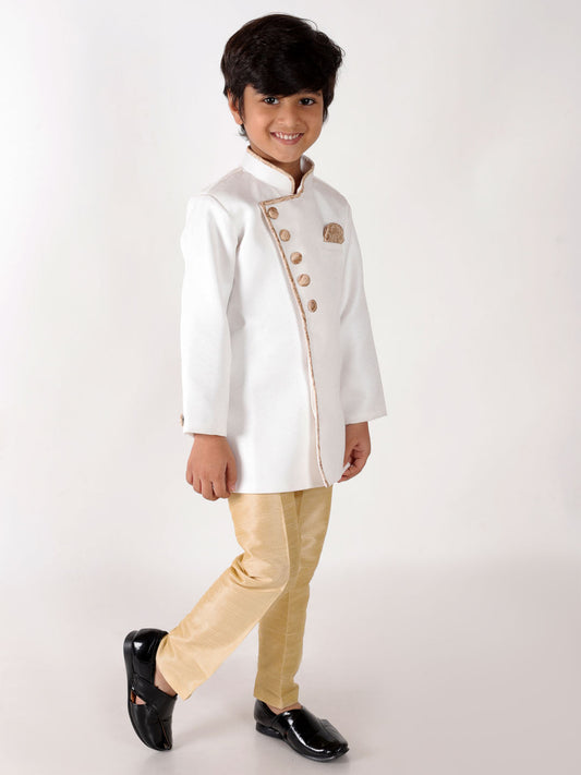 JBN CREATION Boys' White Jute Silk Sherwani Set