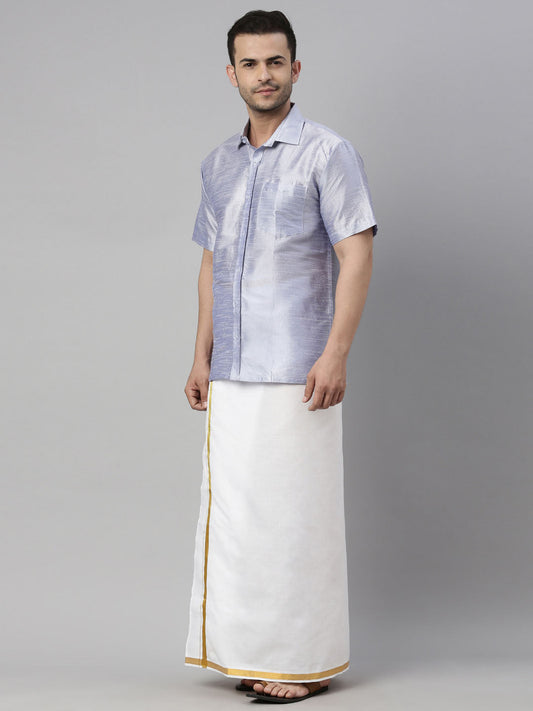 Vastramay Men's Gray Solid Ethnic Shirt And Mundu Set