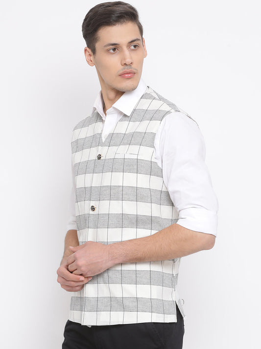 Vastramay Men's White Cotton Waist Coat