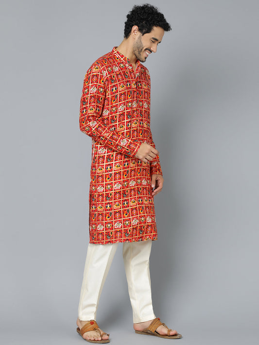 VASTRAMAY Men's Red Patola Print Ethnic kurta Pyjama Set
