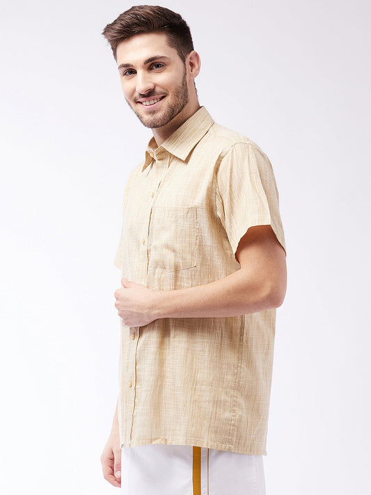 Vastramay Men's Beige Cotton Blend Ethnic Shirt