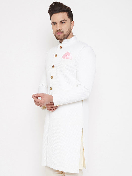 Vastramay Men's White Silk Blend Sherwani Top