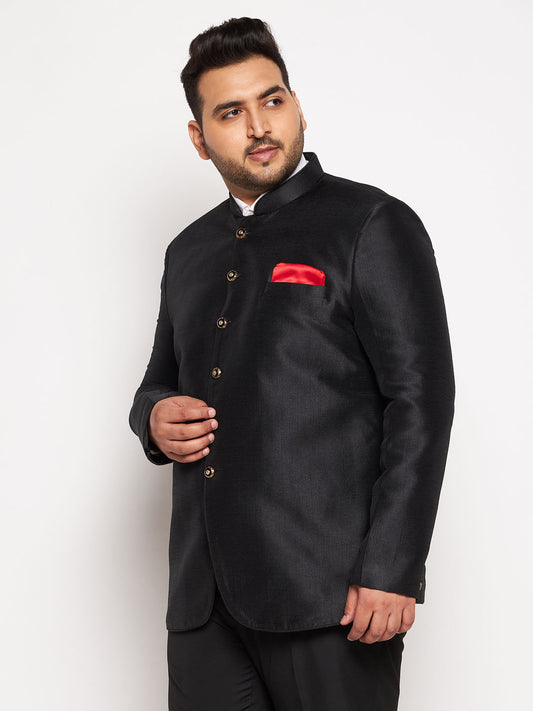 Vastramay Plus Size Men's Black Silk Blend Jodhpuri