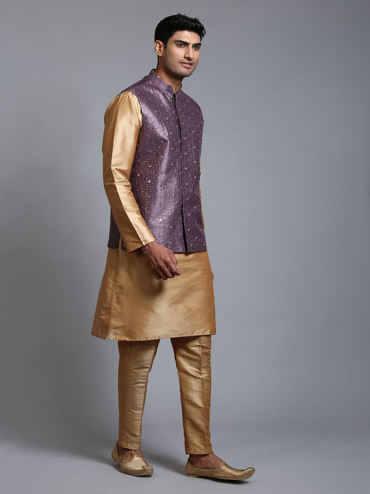 VASTRAMAY Men's Purple Embellished Jacket with Rose Gold Kurta Pant Set