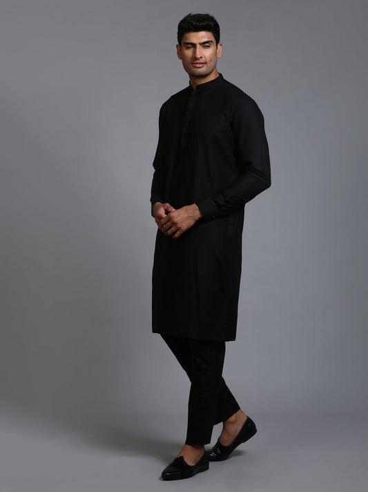VASTRAMAY Men's Black Cotton Blend Kurta and Pant Set