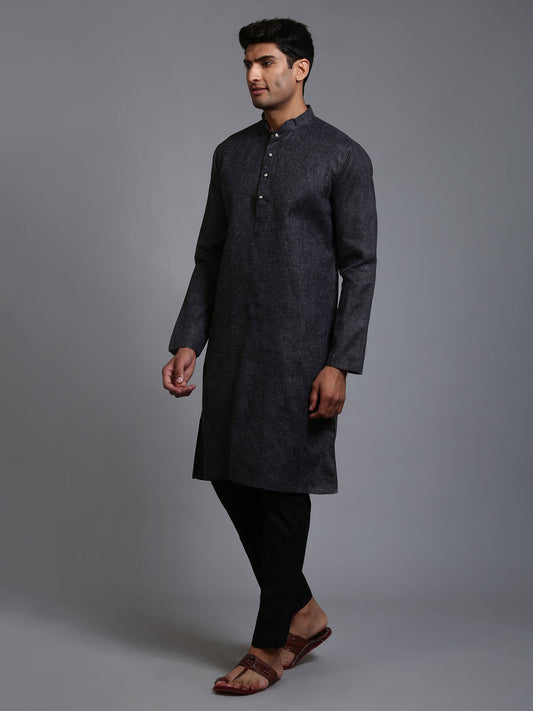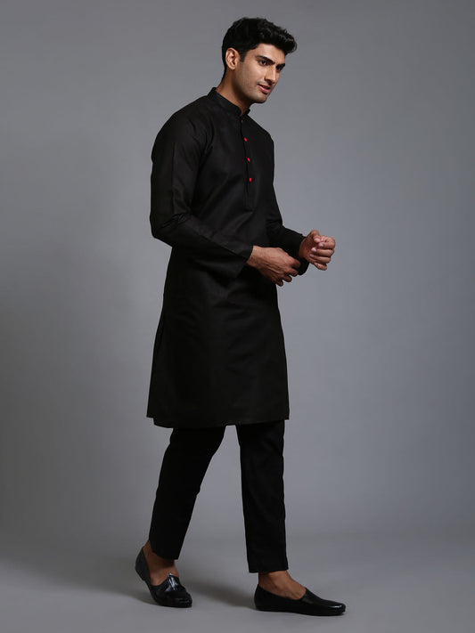 VASTRAMAY Men's Black Cotton Kurta with Pant Set