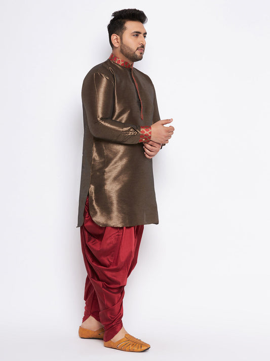 VASTRAMAY Men's Plus Size Maroon Silk Blend Curved Kurta And Dhoti Set