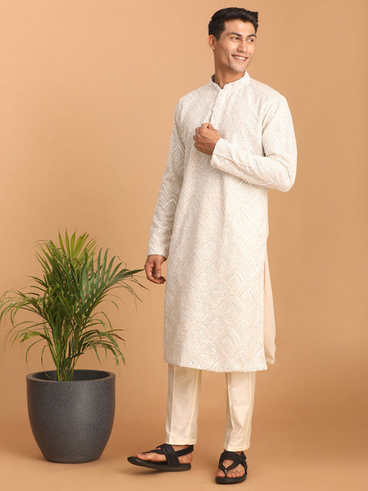 VASTRAMAY Men's Grey Ethnic Mirror Kurta With Pant Set
