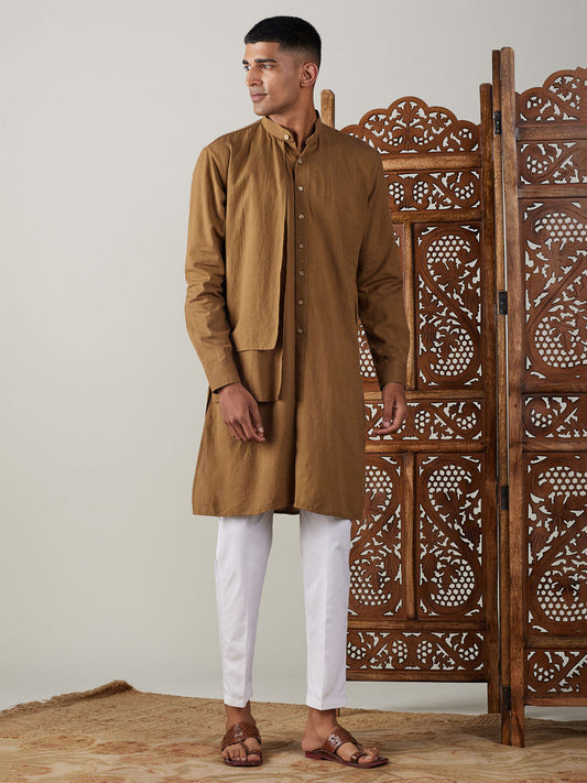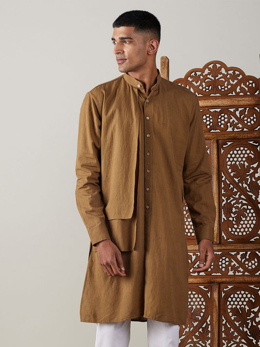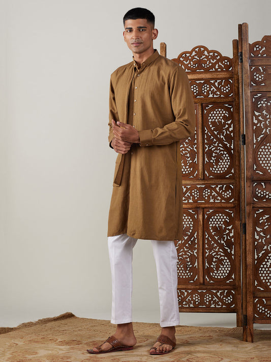 VASTRAMAY Men's Coffee Cotton Cool Dyable Kurta