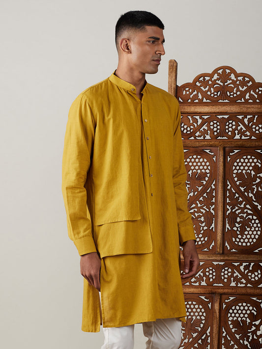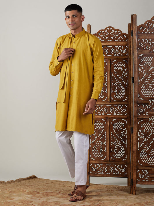VASTRAMAY Men's Mustard Cotton Cool Dyable Kurta