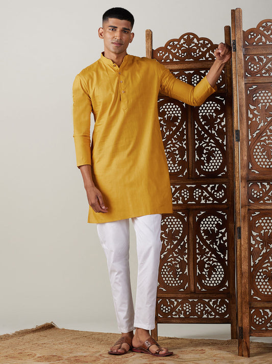 VASTRAMAY Men's Mustard Cotton Kurta With White Pant Set