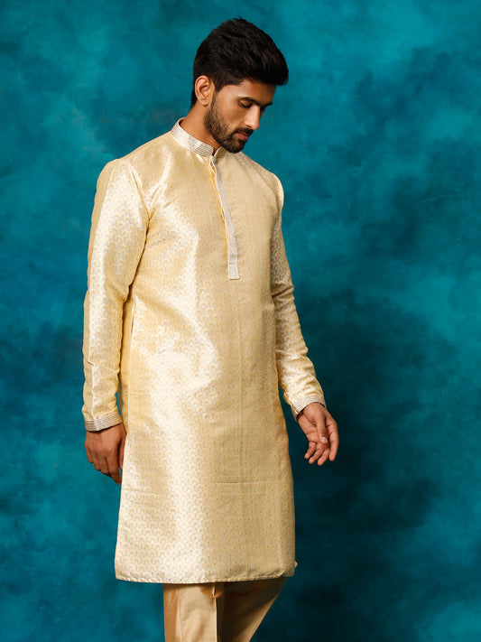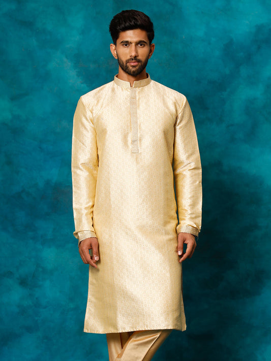 VASTRAMAY Men's Beige Banarasi Jacquard Kurta