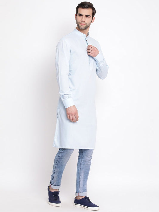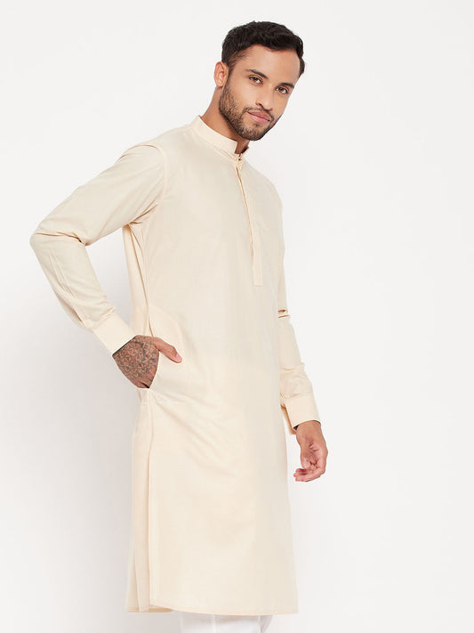 Vastramay Men's Cream Cotton Blend Pathani Style Kurta