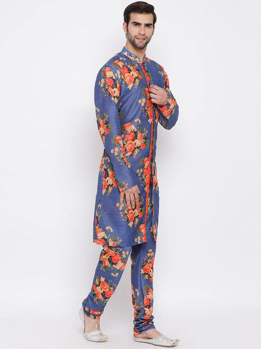 Vastramay Blue Floral Printed Kurta Pyjama Set With Leharia Border
