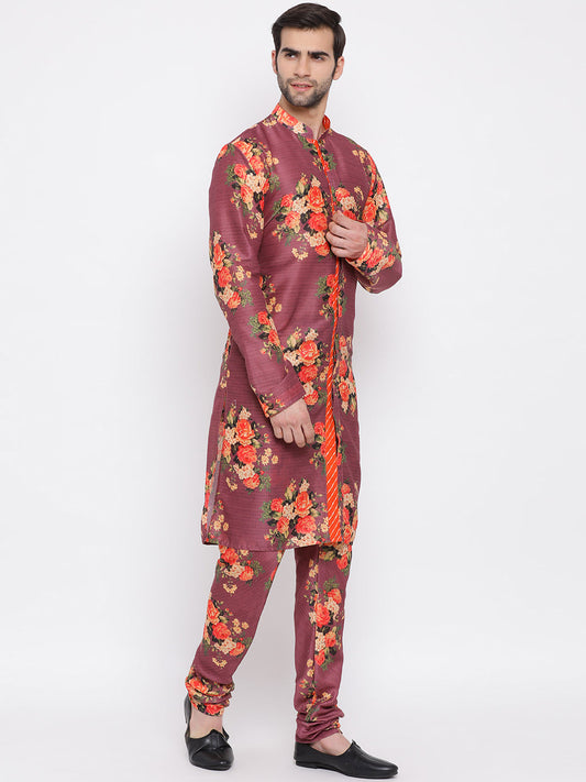 Vastramay Purple Floral Printed Kurta Pyjama Set With Leharia Border