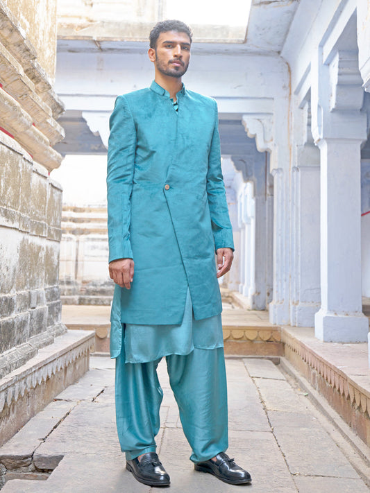 Vastramay Men's Turquoise Cotton Silk Blend Churidar