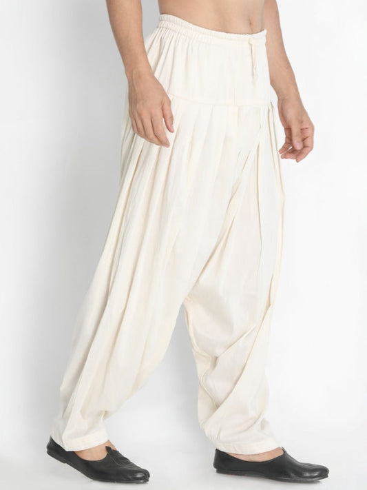 Vastramay Men's Cream Cotton Blend Patiala Pyjama