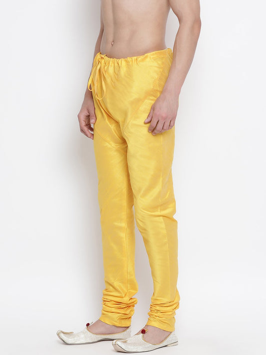 Vastramay Men's Yellow Cotton Silk Blend Pyjama