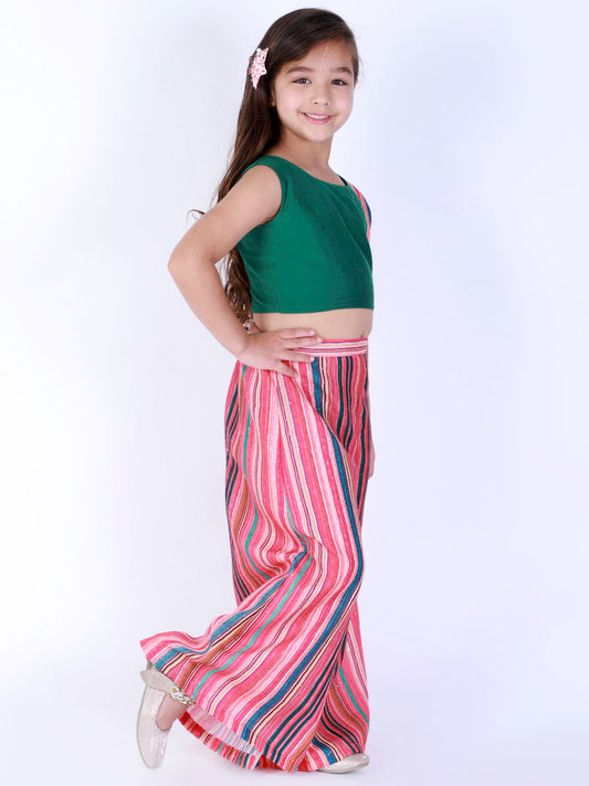 Vastramay Girl's Multicolour Striped Palazzo With Green Crop Top