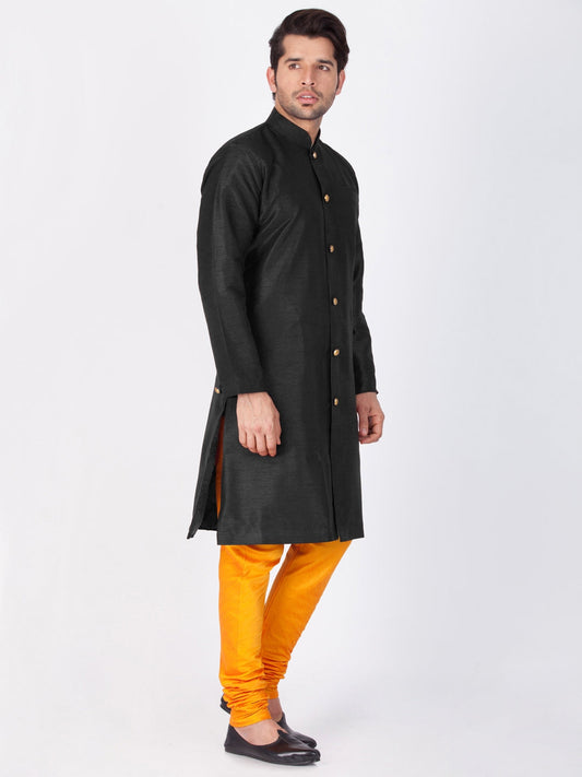 Vastramay Men's Black Silk Blend Sherwani Set