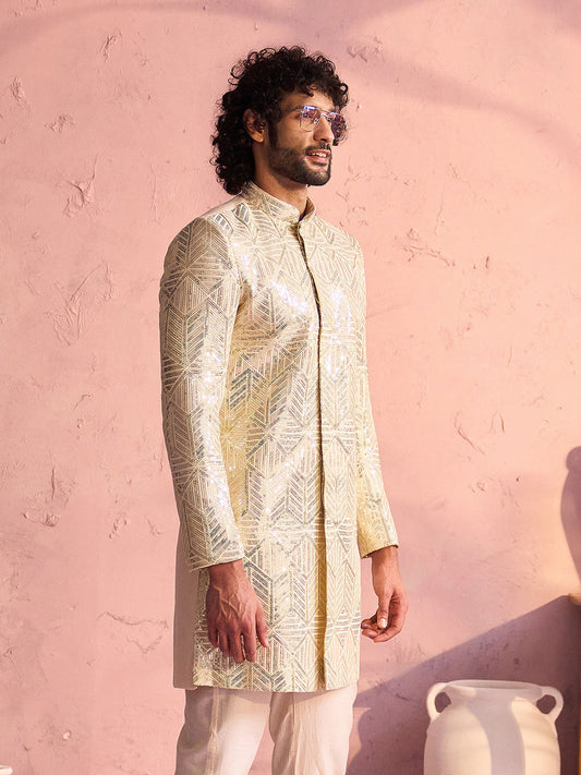 VASTRAMAY Men's Cream Georgette Sherwani Only Top