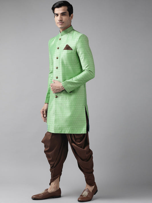 Vastramay Men's Green And Coffee Silk Blend Sherwani Set