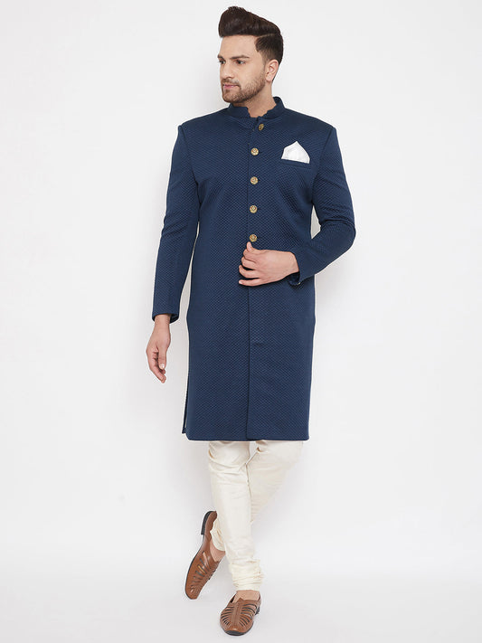 Vastramay Men's Navy Blue Georgette Sherwani Only Top
