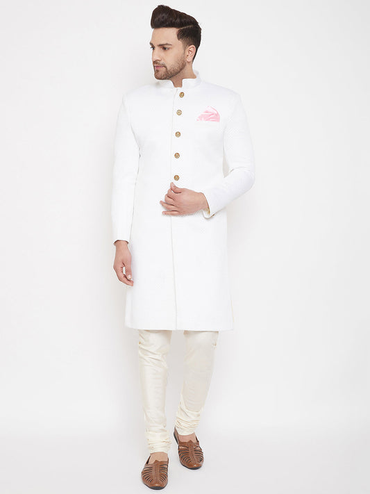 Vastramay White And Cream Baap Beta Sherwani Set