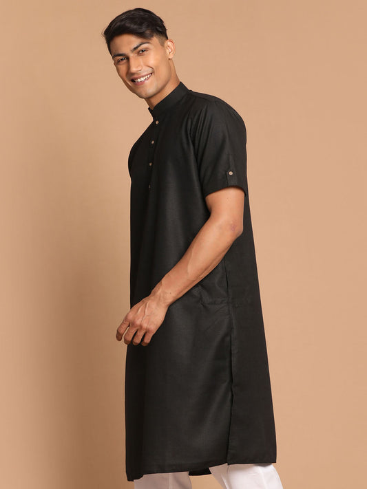 Vastramay Men's Black Cotton Kurta And Mundu Set
