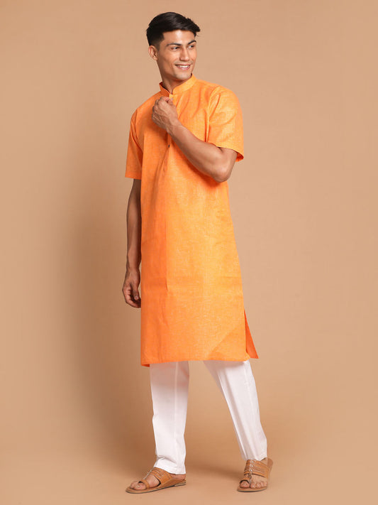 Vastramay Men's Orange Solid Kurta with White Pyjamas