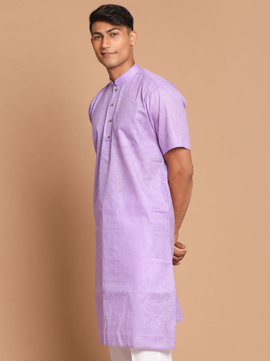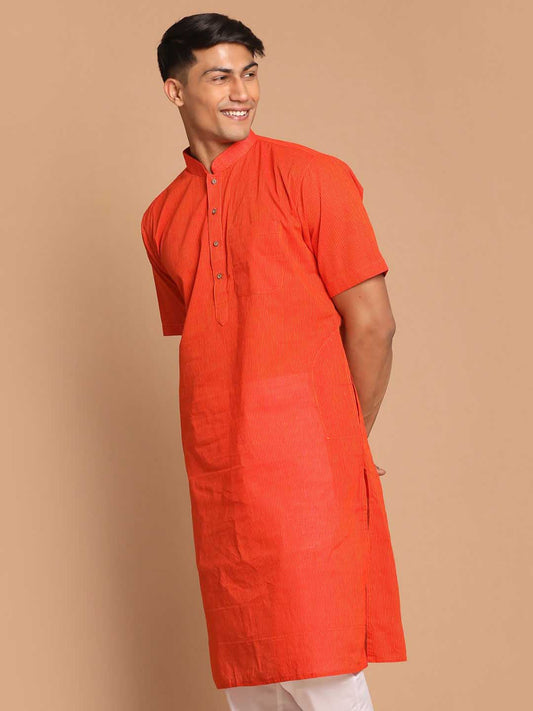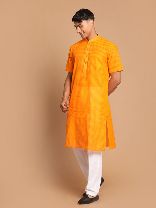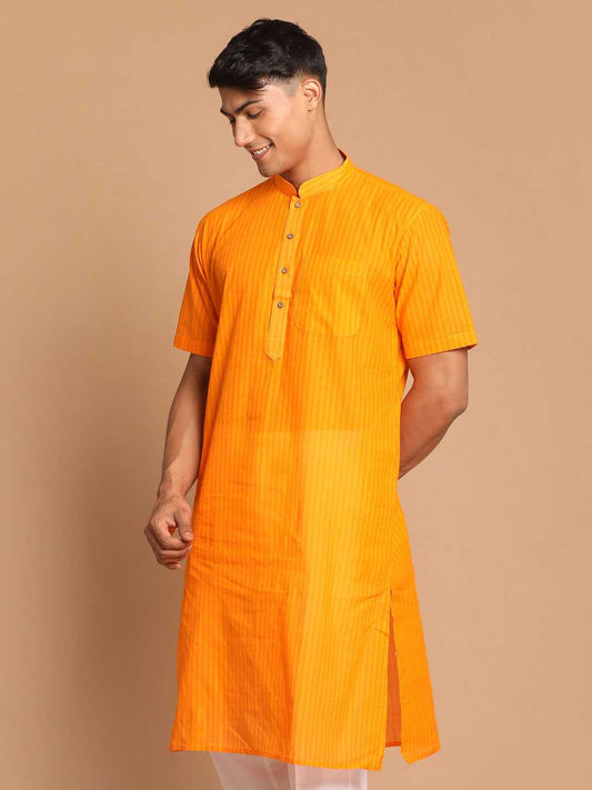 Vastramay Men's Orange Striped Pure Cotton Kurta