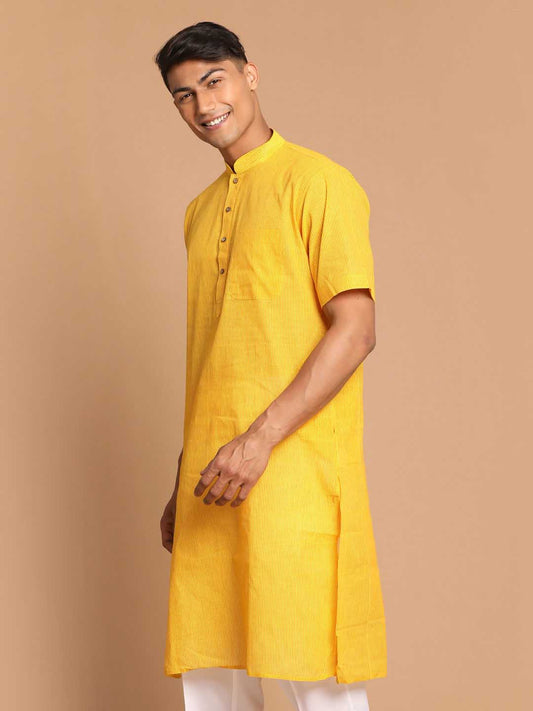 Vastramay Men's Yellow Striped Pure Cotton Kurta