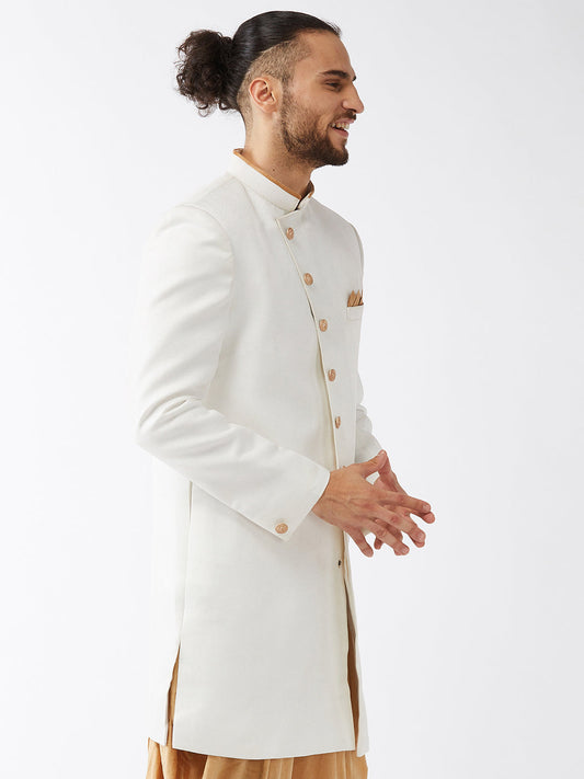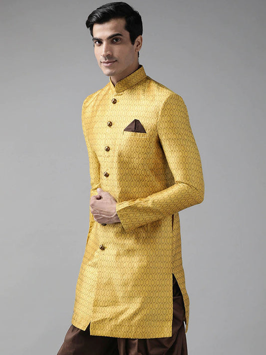 Vastramay Men's Mustard Yellow Sik Blend Sherwani Top
